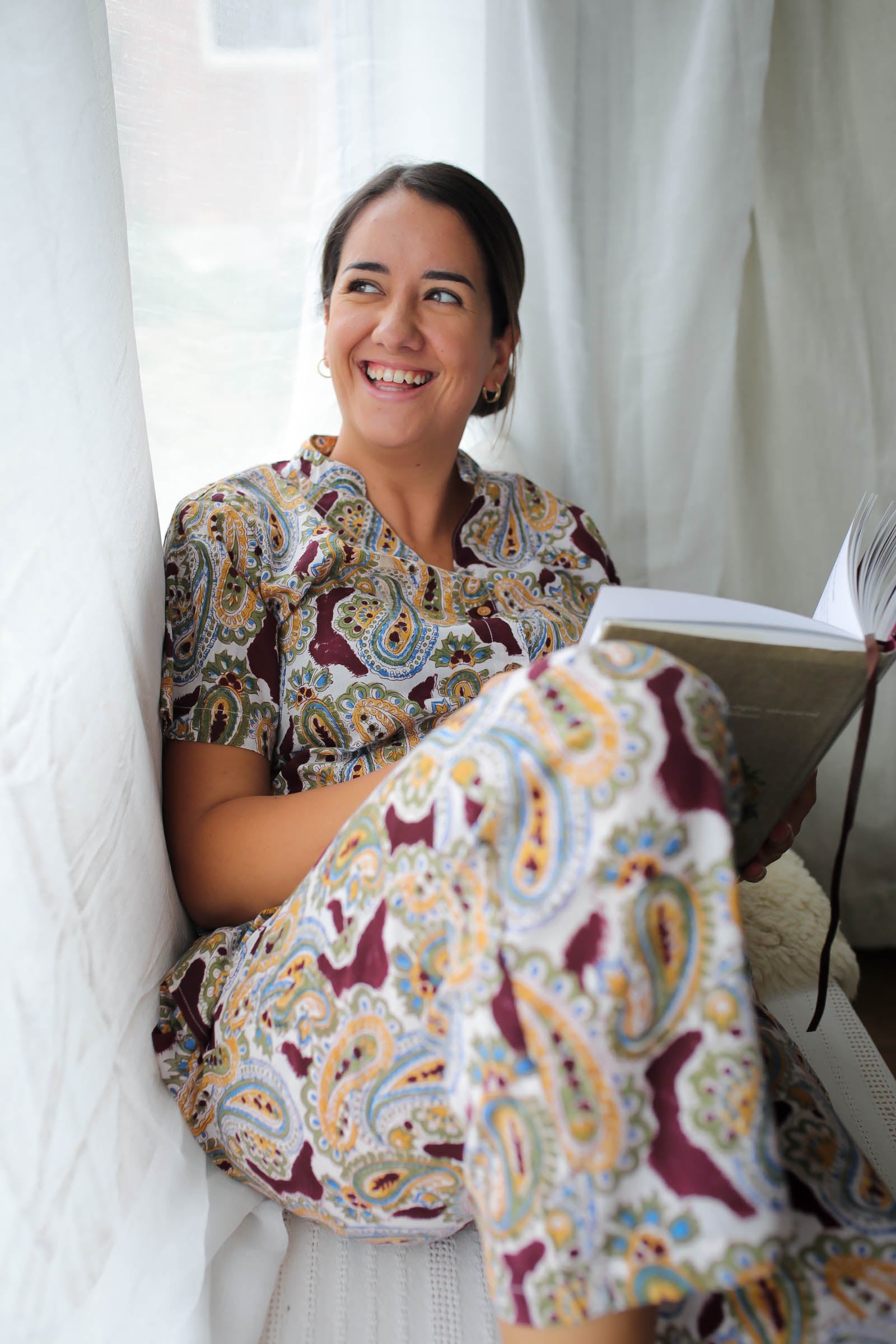 Made from 100% cotton and block printed by artisans, printed using AZO-free non-toxic dyes and finished with french seams and natural coconut shell buttons, our Ambi Pajamas will have you reluctant to get dressed and anticipating bedtime all day.